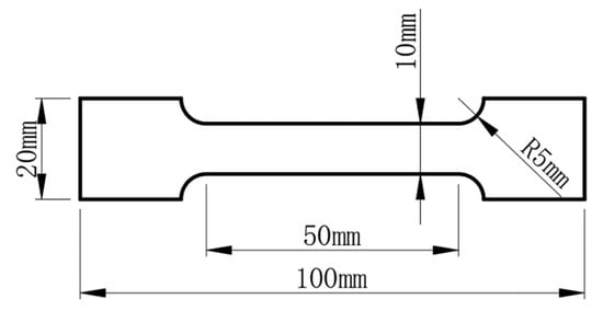Schematic diagram of tensile specimen size.