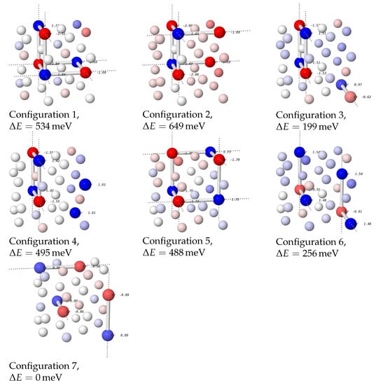 Here, denotes the energy of the supercell. A negative interaction energy means that the configuration is energetically favorable, and a positive energy demonstrates that separating the atoms is more favorable.