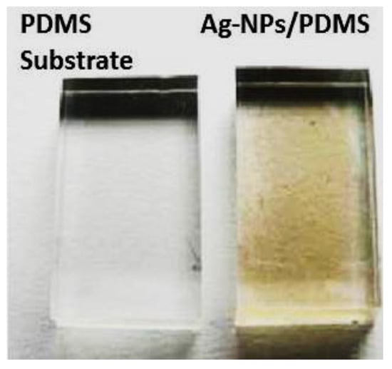 Jamali, A.R.; Bhatti, J.; Khan, W.; Akther, F.; Batool, M.; Batool, R.; Daoush, W.M. Synthesis and Characterization of Silver Nanoparticle-Polydimethylsiloxane (Ag-NP-PDMS) Stretchable Conductive Nanocomposites. Crystals 2022, 12, 1098. https://doi.org/10.3390/cryst12081098