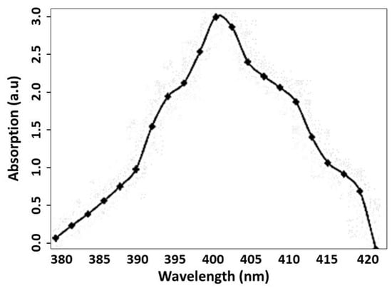3.2. UV Absorption Spectrum of the Ag-NPs