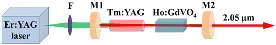 - He, W.; Yao, B.; Ju, Y.; Wang, Y. Diode-pumped efficient Tm,Ho:GdVO4 laser with near-diffraction limited beam quality. Opt. Express 2006, 14, 11653–11659. [Google Scholar] [CrossRef]