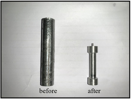 Tensile sample before and after machining as per the standards.