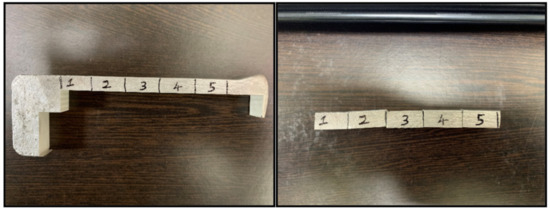 To confirm the homogenous distribution of TiB2 throughout the composite, five identical specimens were cut from each composite bar at a distance of 15, 30, 45, 60, and 75 mm from the lower end, as shown in Figure 8, and they were subjected to a hardness test with five trials for each specimen. The hardness results confirmed that the hardness distribution was uniform throughout the sample, which indicated the uniform distribution of the reinforcement within the matrix. Figure 9 shows the hardness distribution graph of the composite samples.