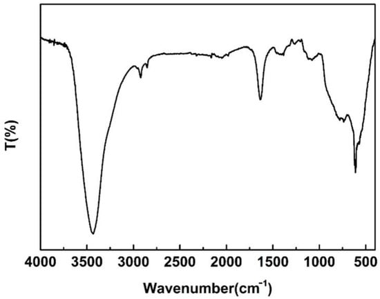 Figure 1 presents the XRD patterns of various precursors prepared by the water bath and hydrothermal methods. The characteristic peaks of Al and Si can be clearly observed; however, a weak peak of the bayerite phase (Al(OH)3, PDF# 20-0011) was observed in the XRD pattern of A17W6, which is consistent with previous reports that bayerite is formed by the reaction of Al with water []. The characteristic peaks of the Al(OH)3 phase in Figure 1c,d were too weak and could not be observed in the XRD pattern. To further illustrate the existence of the bayerite phase in the hydrothermally-prepared precursors, the FTIR spectrum of A17H6 is shown in Figure 2. The strong peak at 3435 cm−1 illustrates the existence of Al(OH)3. Moreover, Al-O stretching vibrations were confirmed by the presence of peaks at 734 and 611 cm−1, confirming the existence of Al(OH)3 []. It has been reported that Si is essential to form boehmite [], i.e., the Al(OH)3 was successfully formed in all precursors.