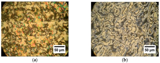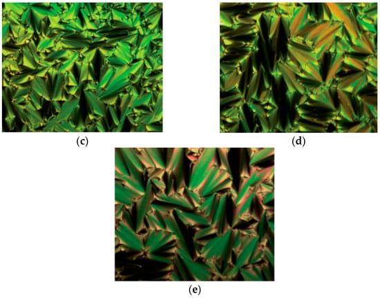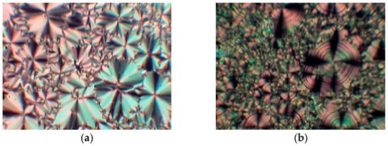 In deciding the form and stability of the improved mesophase, a competitive relationship between end-to-end intermolecular aggregation and side-side parallel interaction plays an important role. For the prepared substances, the types of mesophase textures observed were described and depicted in Figure 10.