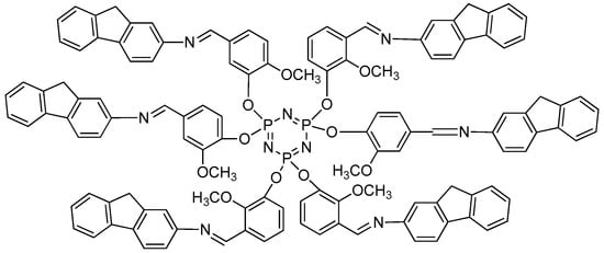 - Aslan, F.; Demirpence, Z.; Tatsiz, R.; Turkmen, H.; Ozturk, A.I.; Arslan, M. The Synthesis, Characterization and Photophysical Properties of Some New Cyclotriphosphazene Derivatives Bearing Schiff Base. Z. Anorg. Allg. Chem. 2008, 634, 1140–1144. [Google Scholar] [CrossRef]