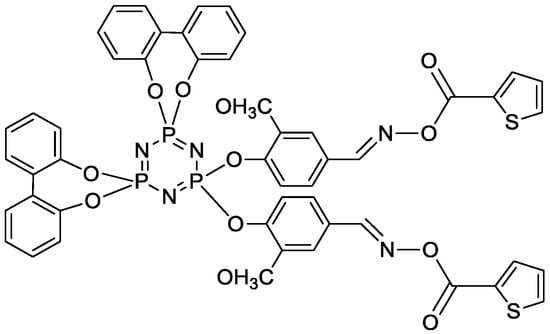 - Al-Shukri, S.M.; Mahmood, A.T.; al Hanbali, O.A. Spiro-Cyclotriphosphazene with Three Functional End Groups: Synthesis and Structural Characterization of New Polycyclotriphosphazenes with Schiff-Base Groups. Polimery 2021, 66, 341–349. [Google Scholar] [CrossRef]