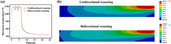 - Linear scanning simulation shows that the maximum temperature of unidirectional scanning is stable. The maximum temperature of bidirectional scanning is higher than that of unidirectional scanning. The bidirectional scanning has a smaller temperature gradient along the radial direction. It can help to improve the dimensional accuracy of the FeCrAl cladding.