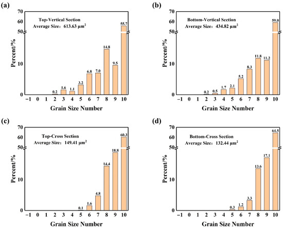 - The grain size of the top and bottom of the cladding was analyzed. The grain of the cladding is columnar. The grain size at the top is larger than that at the bottom due to thermal accumulation.
