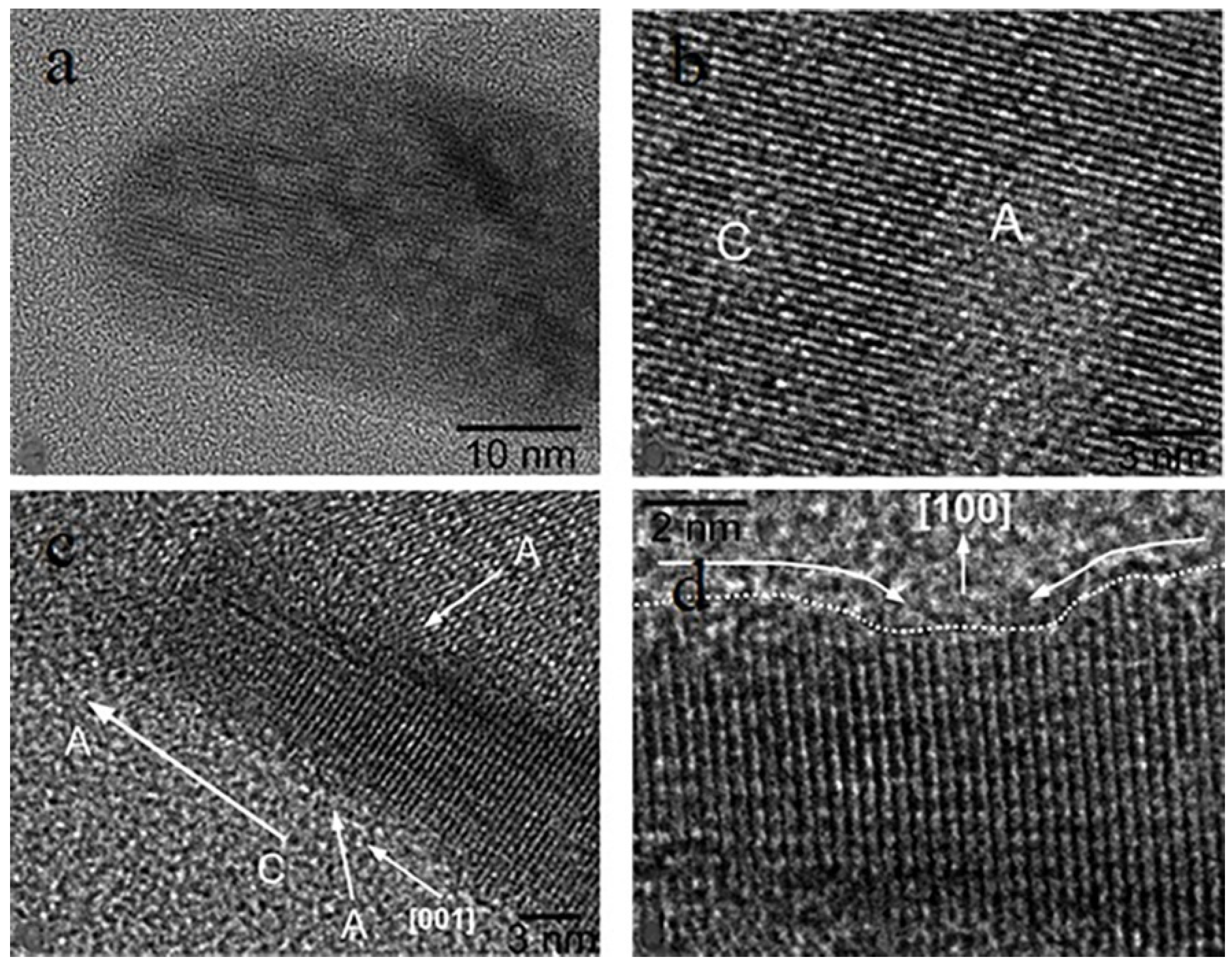 - Penn, R.L.; Banfield, J.F. Imperfect oriented attachment: Dislocation generation in defect-free nanocrystals. Science 1998, 281, 969–971. [Google Scholar] [CrossRef]