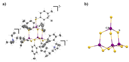 Xu, C.; Zhou, Z.; Han, H. Synthesis, Structure, and Optical Properties of a Molecular Cluster Cd4(p-MBT)10. Crystals 2022, 12, 1236. https://doi.org/10.3390/cryst12091236
