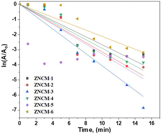 Figure 8. Kinetic study of EC degradation of RhB in the presence of ZNCM nanoparticles.
