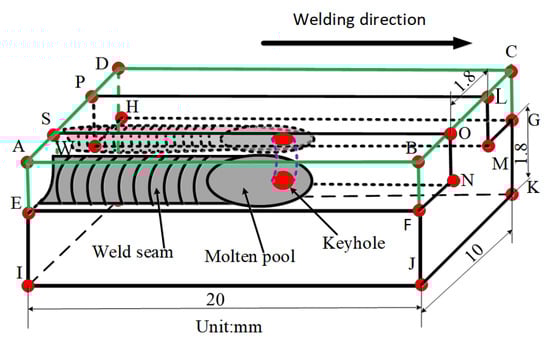 - Ai, Y.; Jiang, P.; Wang, C.; Mi, G.; Geng, S. Experimental and numerical analysis of molten pool and keyhole profile during high-power deep-penetration laser welding. Int. J. Heat Mass Transf. 2018, 126, 779–789. [Google Scholar] [CrossRef]