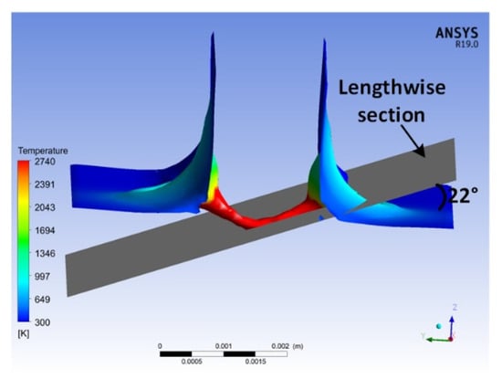 Figure 11 shows the intercept position of the longitudinal section flow field during the DSLBW process for T-joints. The gray surface was a section, as shown in Figure 11.
