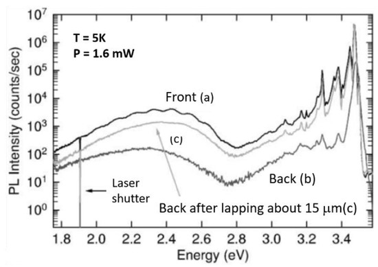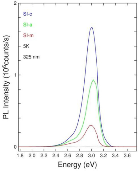 Low temperature photoluminescence spectra of SI a-, c-, and m-plane wafers. Note the absence of any NBE emission bands [29].