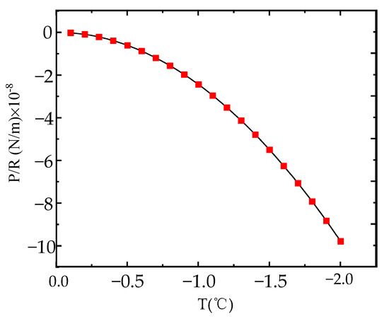 Equation (19) shows that Rp decreases with the increase of freezing temperature, T. In order to reduce unknown parameters, the temperature function of separation pressure between adjacent clay particles prepared by Equations (19), (21) and (22) is as follows: