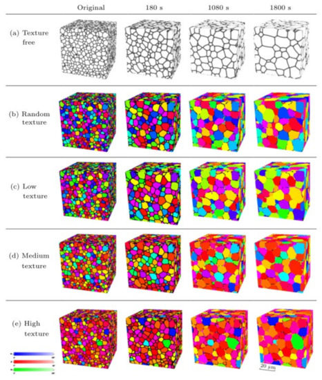 - Fan, D.; Chen, L. Computer simulation of grain growth using a continuum field model. Acta Mater. 1997, 45, 611–622. [Google Scholar] [CrossRef]