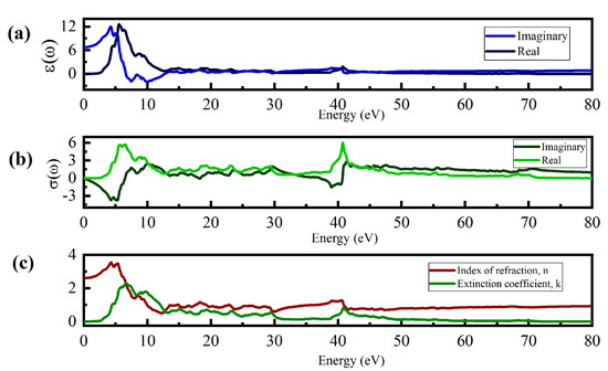 (a) Dielectric constant, imaginary and real parts. (b) Real and imaginary parts of optical conductivity spectra. (c) Refractive index and extinction coefficient. All properties were calculated using HSE06.
