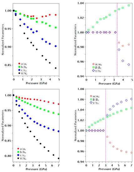 - Angel, R.J.; Bujak, M.; Zhao, J.; Gatta, G.D.; Jacobsen, S.D. Effective hydrostatic limits of pressure media for high-pressure crystallographic studies. J. Appl. Cryst. 2007, 40, 26–32. [Google Scholar] [CrossRef]