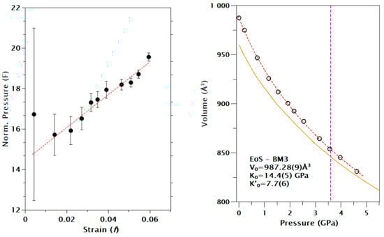 - Angel, R.J.; Gonzalez-Platas, J.; Alvaro, M. EosFit7c and a fortran module (library) for equation of state calculations. Z. Kristallogr. 2014, 229, 405–419. [Google Scholar] [CrossRef]