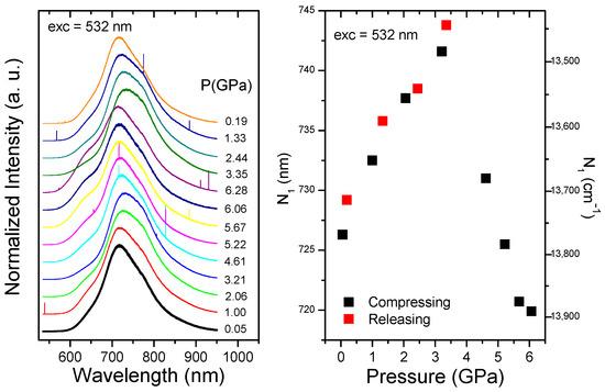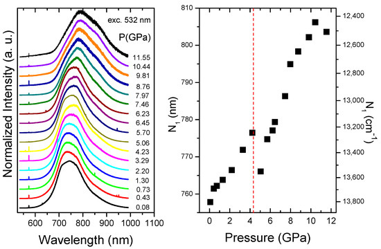 - Benito, Q.; Baptiste, B.; Polian, A.; Delbes, L.; Martinelli, L.; Gacoin, T.; Boilot, J.P.; Perruchas, S. Pressure control of cuprophilic interactions in a luminescent mechanochromic copper cluster. Inorg. Chem. 2015, 54, 9821–9825. [Google Scholar] [CrossRef]