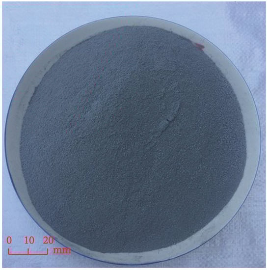 In the process of smelting industrial silicon and ferrosilicon in the industrial electric furnace at a high temperature, silica fume (Figure 3) can be obtained through the collection and treatment of waste gas and soot by the capture device []. SiO content accounts for around 90% of the total smoke and dust in the escaping smoke and dust, so the main component of silica fume is SiO.