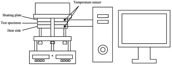 There are many testing methods for measuring the thermal conductivity of thermal insulation materials [,]. The thermal conductivity of thermal insulation materials is affected by various factors (e.g., material types, material components, ambient temperature and humidity) [], which brings more difficulties to the measurement of the materials’ thermal conductivity under actual working conditions. Under laboratory conditions, we use the thermal conductivity meter to build a relatively ideal thermal conductivity environment; the steady state method was used to measure the thermal conductivity of the improved GCIB.