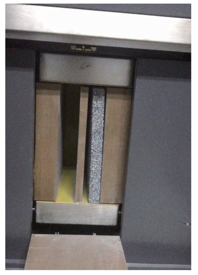 The main equipment for measuring the thermal conductivity of the GCIB by the steady state method is the intelligent thermal conductivity tester (device model: DRCD-3030), which is mainly composed of an electric heater, heating disk and radiator, as shown in Figure 10. The measurement range of the thermal conductivity is 0.010–3.000 , and the test standard adopted is “Thermosetting composite polystyrene foam insulation board” [].