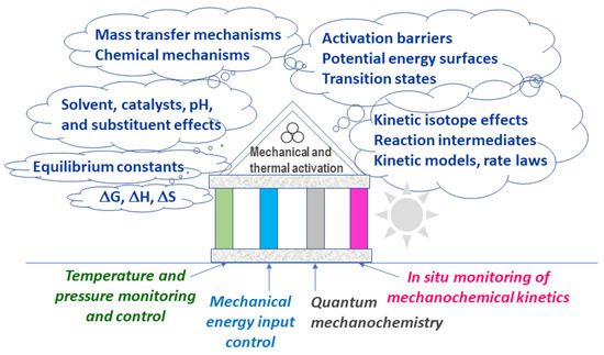 All the above examples indicate that there is potential for transferring and reusing the bulk of knowledge on thermodynamic and kinetic solvent effects in solution chemistry to mechanochemical reaction mechanisms that make use of liquid additives to some extent (e.g., LAG, pastes, slurries, etc.).