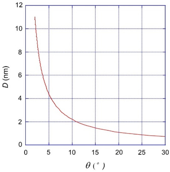 where b is the magnitude of the Burgers vector and θ is the misfit angle of the sub-B in the radian unit [15]. The dislocation distance D in the present sub-B is 2 ~ 4 nm for θ = 5 ~ 10°, as shown in Figure 15. If we define the length s as a projected length of a unit cell along the dislocation line to the surface normal axis of the film, the dangling bond density per unit length is given by 2/s, where s is equal to the lattice constant of 0.543 nm. The dangling bond density in the sub-B is calculated from D and s as
