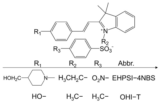 Chemical structures of indolium-based EHPSI-4NBS and OHI-T.