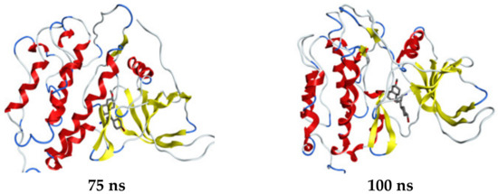 The molecular dynamic simulation for compound 4 at 100−ns simulation time.