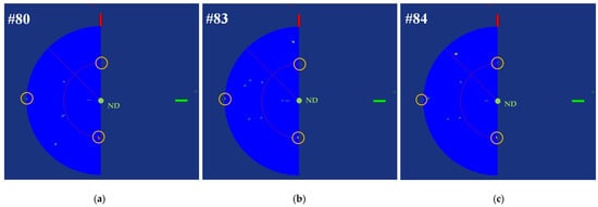 Figure 8 shows the in-plane PF of (004) reflections for samples #80, #83, #84. The ND direction (normal to the plane of the figure in the center of the PF) corresponds to the normal to the film surface. The circles mark the position of the main reflections corresponding to the [100], [010], [001] directions of the film in the case of a perfect structure (in accordance with the theory). It can be seen from Figure 8 that, in addition to the main peaks, there are additional reflections, which indicates the presence of misoriented crystal blocks. The presence of grains and the domain structure of the film can be assumed.