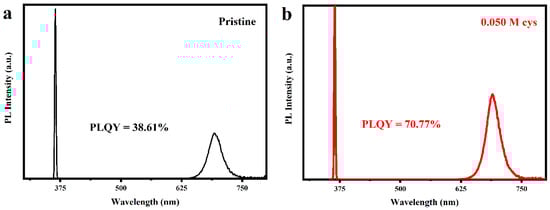 PLQY measurement of (a) the pristine and (b) Cys-processed CQDs.