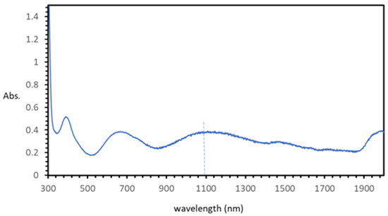 The electronic spectrum of 1 (Figure 7) is typical of Ni(II) complexes with octahedral coordination polyhedron. It shows bands with maxima at 392, 667, ~730 (shoulder), and 1078 nm. As is well known, the rather symmetrical band with maximum near 1100 cm−1 (related to the electronic transition 3A2g→3T2g) enables a direct estimation of Δo (9260 cm−1) for 1. These bands occur at 400, 660, ~725, and 1175 nm in the spectrum of the [Ni(H2O)6]2+ ion (Δo 8500 cm−1). The hypochromic displacement observed in the spectrum of 1 is mainly due to the anionic nature of its methanolate and acv-H ligands, because only one O-aqua donor of 2 is replaced by an N-heterocyclic one in 1.