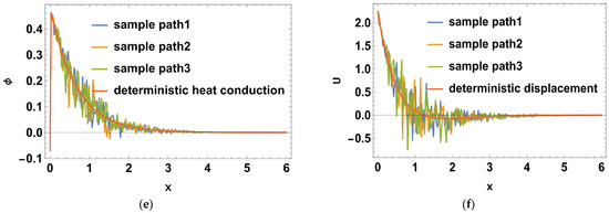 Since , the mean of all the sample paths of the temperature field is the same as the solution for the deterministic case.