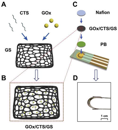- Li, B.; Wu, X.; Shi, C.; Dai, Y.; Zhang, J.; Liu, W.; Wu, C.; Zhang, Y.; Huang, X.; Zeng, W. Flexible Enzymatic Biosensor Based on Graphene Sponge for Glucose Detection in Human Sweat. Surf. Interfaces 2023, 36, 102525. [Google Scholar] [CrossRef]