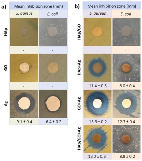 - Sánchez-Campos, D.; Peña-Juárez, M.G.; Salado-Leza, D.; Mendoza-Anaya, D.; Rodríguez-Lugo, V.; González-Calderón, J.A.; Pérez, E. A Non-Toxic Synergistic Antibacterial Platform Based on Green Silver Nanoparticles Deposited on Hydroxyapatite/Graphene Oxide Composites. Mater. Today Commun. 2023, 35, 106097. [Google Scholar] [CrossRef]