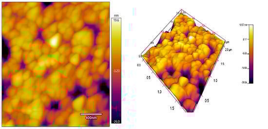 Atomic force microscopy (AFM) observation was carried out on WC-based cemented carbide with a graphene content of 0.6 wt.% to investigate further the enhancement mechanism of graphene on WC-based cemented carbides sintered by SPS, as shown in Figure 6. The surface morphology and three-dimensional morphology of the sample can be seen in the figure. The structure of the specimen is relatively homogeneous, the grain size has been refined with the addition of graphene, and the number and size of pores have been greatly reduced.