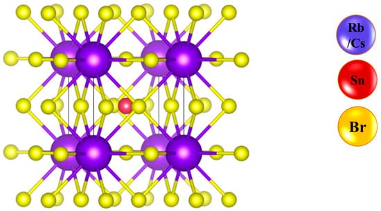 Crystal structure for the studied cubic perovskites XSnBr3 (X = Rb/Cs).