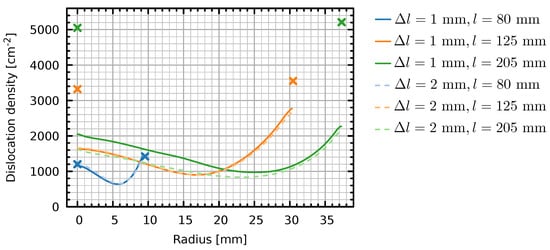 - Sabanskis, A.; Dadzis, K.; Gradwohl, K.P.; Wintzer, A.; Miller, W.; Juda, U.; Sumathi, R.R.; Virbulis, J. Parametric numerical study of dislocation density distribution in Czochralski-grown germanium crystals. J. Cryst. Growth 2023, 622, 127384. [Google Scholar] [CrossRef]