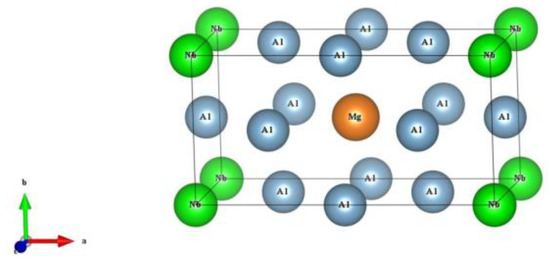 Owing to their light weight, formability, good resistance to corrosion, great weldability, affordability and excellent recyclability, aluminum-magnesium (Al-Mg)-based compounds and alloys are extensively applied in aerospace, automobile, marine, electronics and civil fields [1,2,3]. Nevertheless, Al-Mg-based materials also possess a relatively low strength, which greatly limits their practical applications [4,5]. Therefore, it is extremely important to enhance the mechanical performance of these kinds of materials. The addition of elements, for example, Zr, Er, Sc, Zn, Ag and Cu, can upgrade the mechanical performance of Al-Mg-based materials [6,7,8,9]. Researchers have shown that Niobium (Nb) also has the potential to enhance the mechanical performance of some compounds and alloys [10,11,12,13,14]. However, there is a lack of research regarding the mechanical behaviors of Al-Mg-based materials with the addition of Nb.