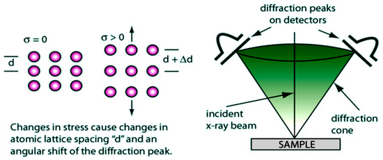 X-ray diffraction has been used extensively for residual stress measurements in tests [19,20,21], and XRD measurements of stress are based on the Bragg equation.