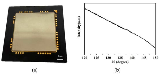 (a) Front side of the test sample, (b) XRD pattern of the sample front side at 120–150°.