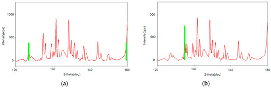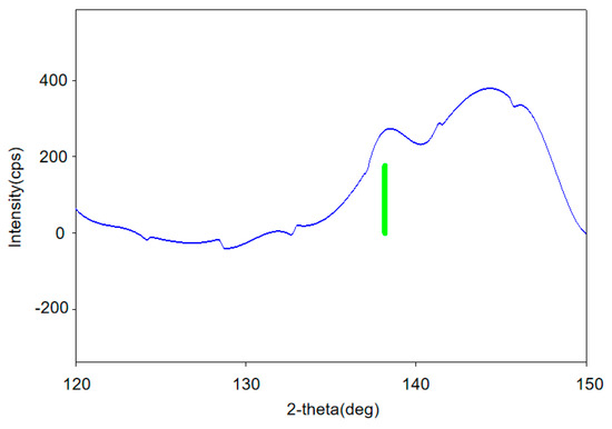 The principle of the X-ray diffraction method [22,23] is based on the phenomenon that the crystallographic plane spacing changes with residual stress, which leads to a shift in the Bragg diffraction peaks, and the distance of this shift is related to the magnitude of the stress. The method uses X-rays with a wavelength of to irradiate the specimen at different angles of incidence, measure the corresponding diffraction angle , and calculate the corresponding slope . The residual stress can be calculated.