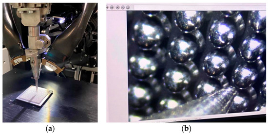 Testing of BGA solder joints on the back side of the sample. (a,b).