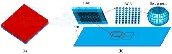 Finite element model. (a) Encapsulation surface, (b) BGA solder joints.