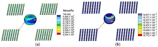 The height of the solder joint, pad diameter, and spacing between solder joints was set to 0.40 mm, 0.48 mm, and 1.20 mm, respectively, during a one-way analysis of the solder joint diameter. Other parameters remained consistent with those used in the sensitivity analysis. Only the diameter of the solder joints was changed, and was set to 0.55 mm, 0.60 mm, 0.65 mm, 0.70 mm, and 0.75 mm, respectively. Five finite element models were established to analyze residual stress in reflow soldering. Table 5 presents the results of the finite element analysis of post-soldering residual stress for five different diameters of BGA solder joints.