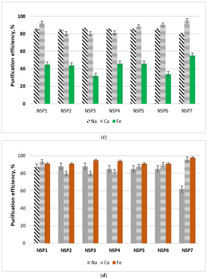 - if Ca and Na content in the NSP exceeds 0.5% in total, and at the same time the content of Co and Cu exceed 1.0% and the Fe content exceeds 0.5%, a mixture containing ≤40% v/v of ethanol and ≤50% v/v of methanol, with the addition of up to 10% v/v of glycerol and ethylene glycol, should be used for purification.