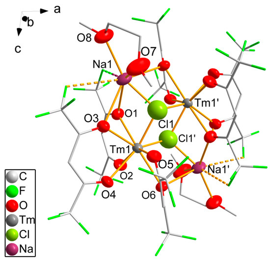 2.7. Synthesis of [Tm(hfaa)3(DME)] (7), [Tm(hfaa)3(DME)(NaCl)]2 (8) and Na[Tm(hfaa)4] (9)